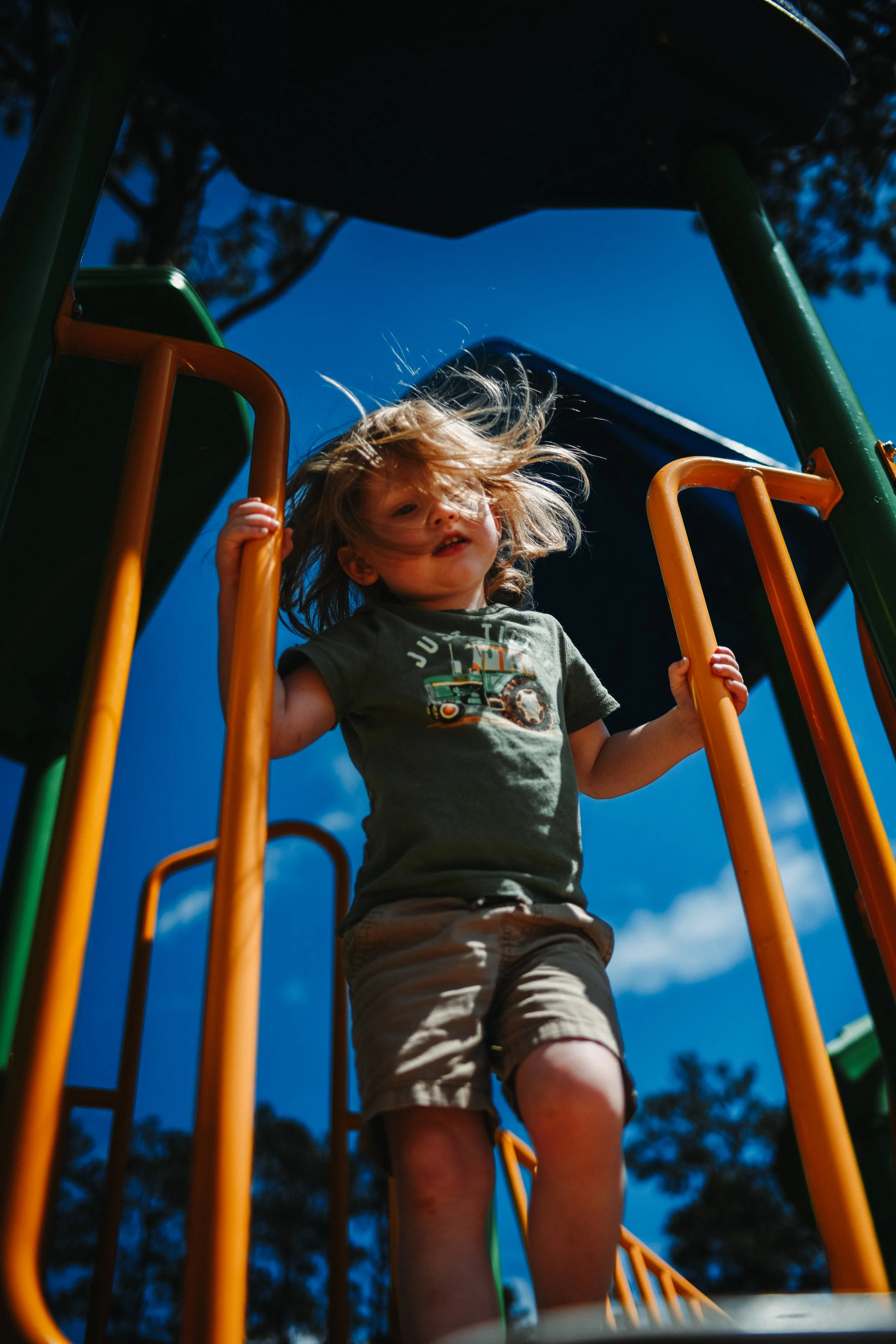 And that's really the story of Wilder. He moves through the world on his own terms, at his own pace — which is always full speed — and he doesn't need an audience or a plan. He just goes. Slide to ladder to whatever looked climbable next, every section of that playground visited without a single pause to check if anyone was keeping up.